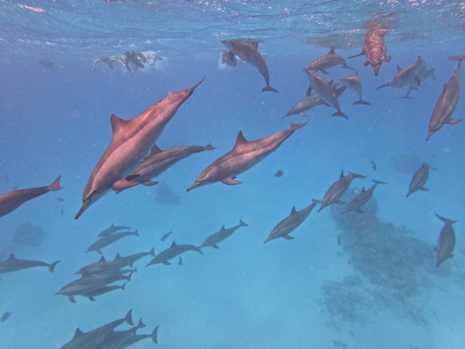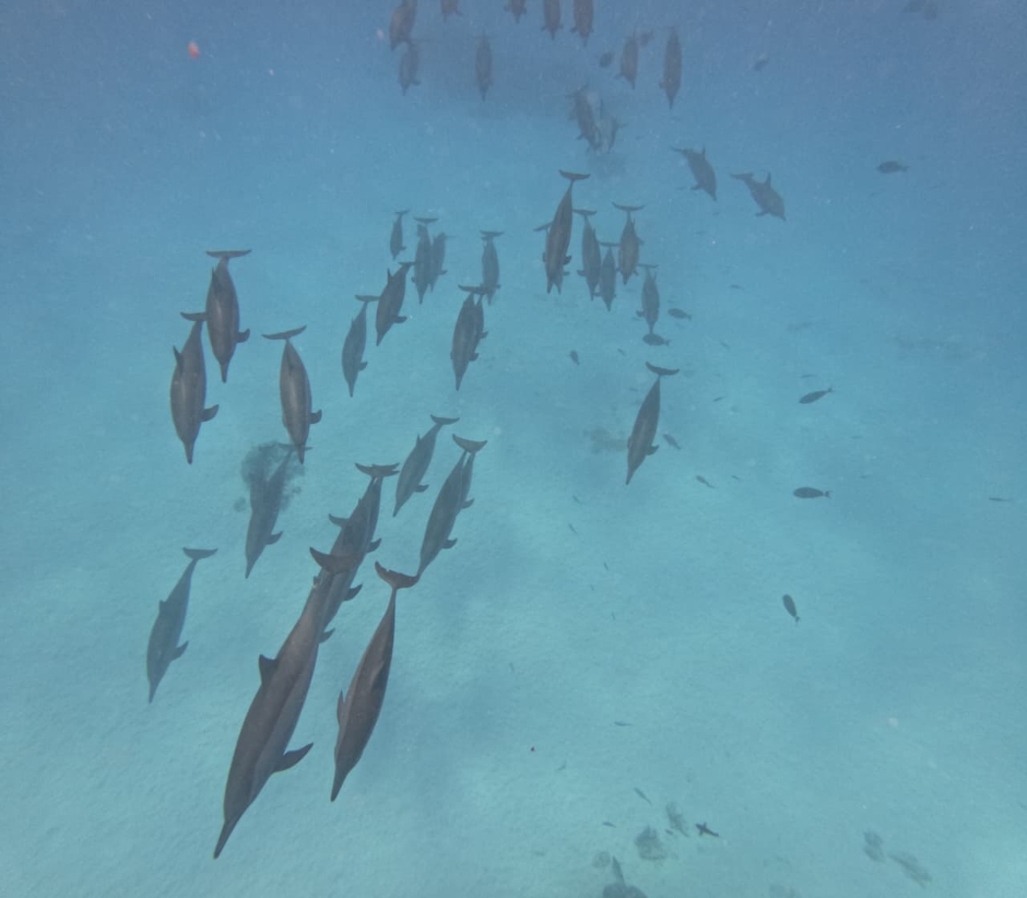 - Up to 3 swims per day with wild dolphins (optional join as much or as little as you like)